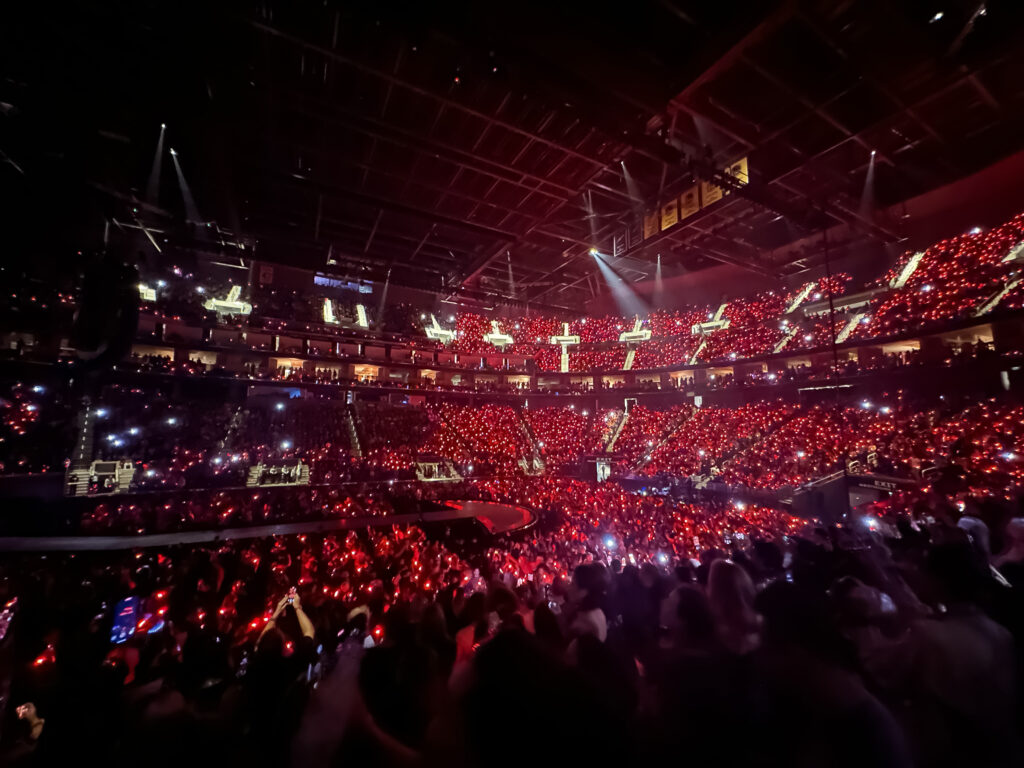 The set design, a towering, Italian marble-inspired fantasy, evoked something between the Vatican and a haunted castle. Each act unfolded like its own chapter in a surreal pop opera, complete with dance solos, skeletons, biblical motifs, and a shifting palette of LED-lit bracelets that turned the crowd into a pulsing, multicolor organism.
