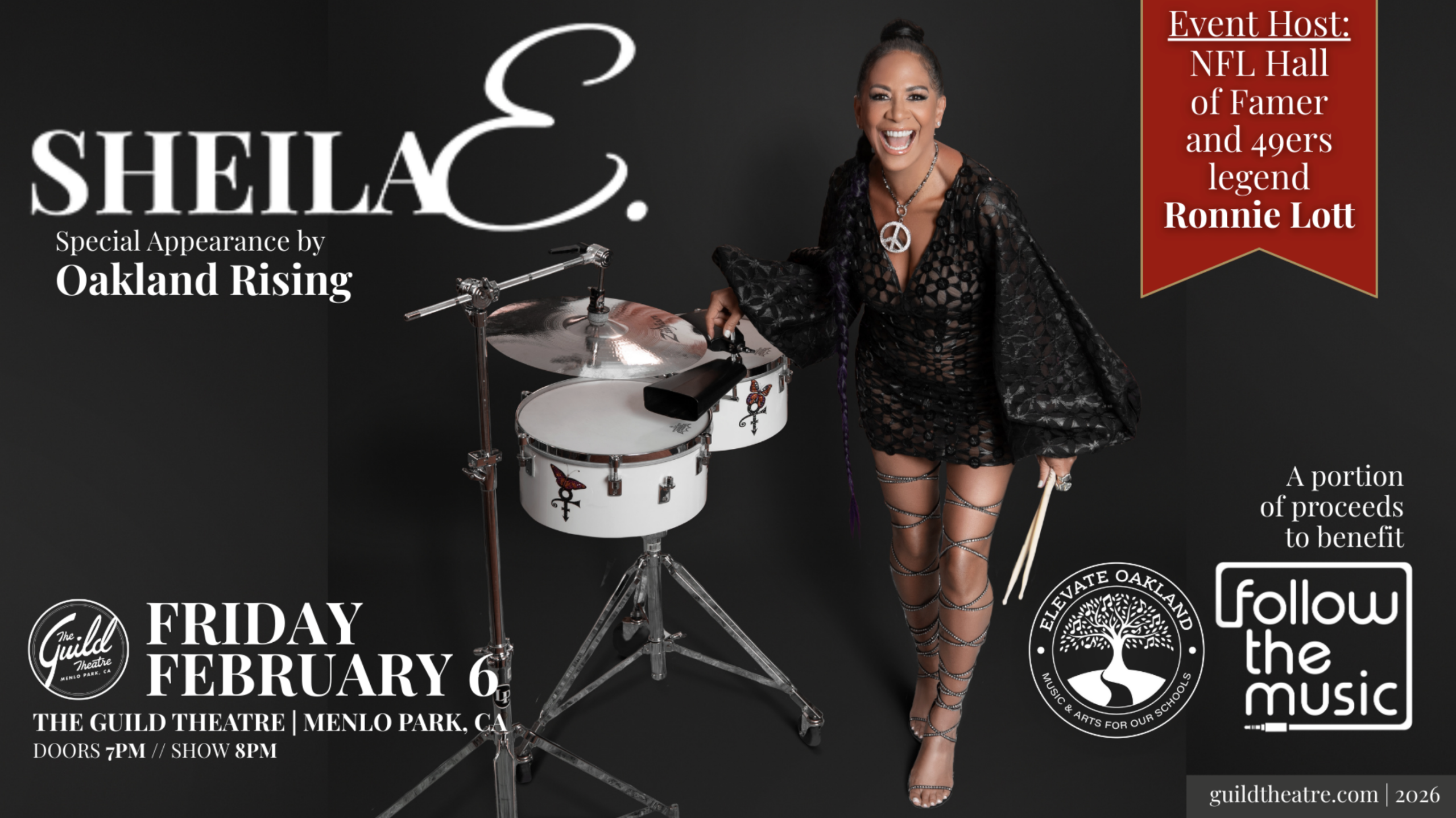 The event also marks a meaningful full-circle moment for the venue. “Two years ago Ronnie Lott, Sheila E., and her non-profit Elevate Oakland helped us launch Follow the Music at the Guild Theatre,” said Phil Green, Executive Director of Follow the Music. “So this is a full circle moment.”