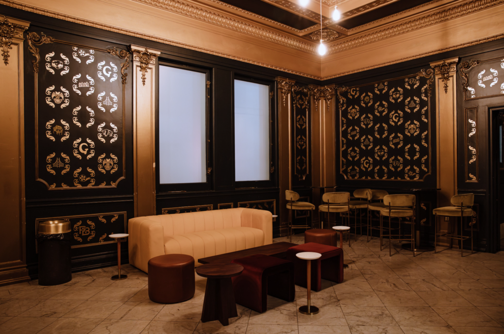 The interior has been repainted in Salamander Green, providing a fresh, vibrant look while preserving the building’s iconic architectural details. From its 35-foot ceilings to the 22 timeless turn-of-the-century teardrop chandeliers, the ballroom radiates historic grandeur.